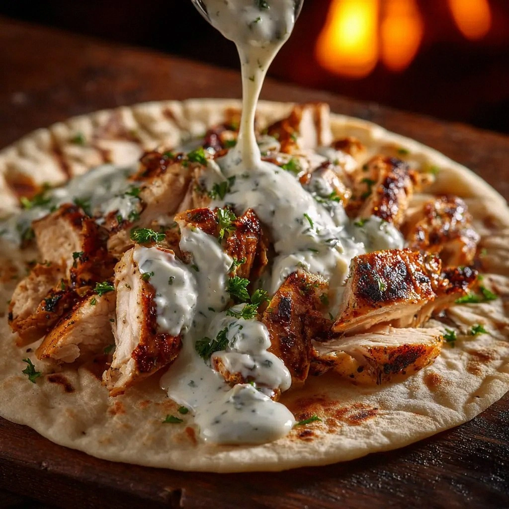 - Step 7: Serve with Bread. Warm pita or flatbread in a dry skillet or oven. Lay the bread flat, spoon the chicken and sauce over it, and fold into a wrap. Serve immediately while the chicken is still hot and the sauce is silky.