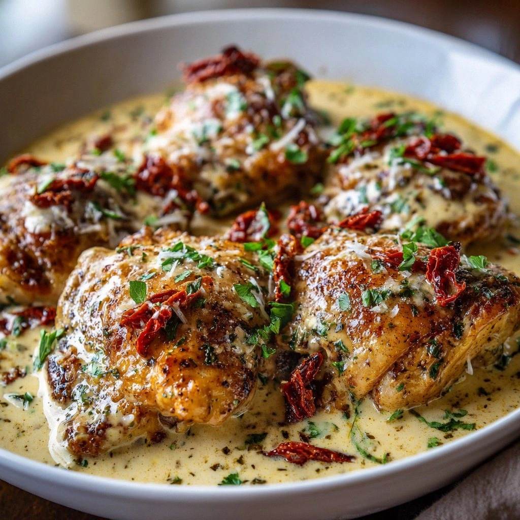 - Sear for Depth: In a large skillet over medium‑high heat, add a splash of olive oil. Once hot, sear the chicken thighs until golden brown on both sides—about 2–3 minutes each side. This caramelization adds a savory crust that enriches the final sauce. Don’t rush it; let the Maillard reaction happen.